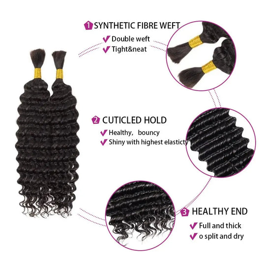 Synthetic Deep Wave Bulk hair For Braiding 160g No Weft Deep Wave For Braiding Micro Faux Braiding Hair for Boho Braids Wet