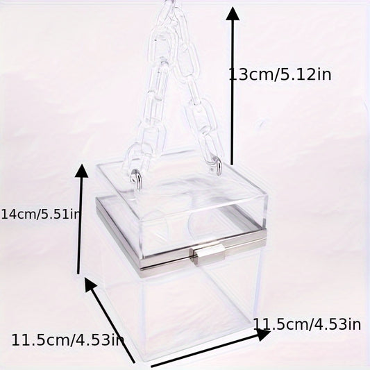 Acrylic Transparent Box Purse, Summer Crossbody Chain Bag, Small Fresh Square Shoulder Bag With Acrylic Chain