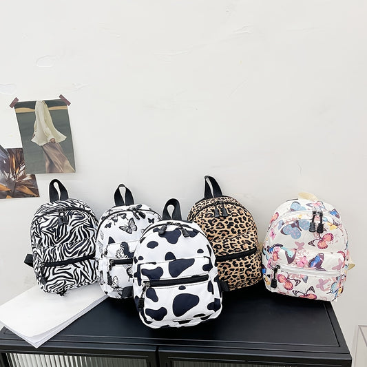 Animal Print Nylon Backpack, Women's Fashion Multi Zipper Schoolbag, Small Purse For Work & School
