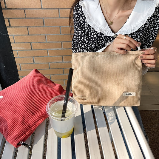 Vintage Corduroy Striped Clutch Bag - Stylish Travel Storage Purse with Solid Color Design, Spacious Interior, and Durable Construction - Perfect for Cosmetics, Toiletries, and Daily Essentials