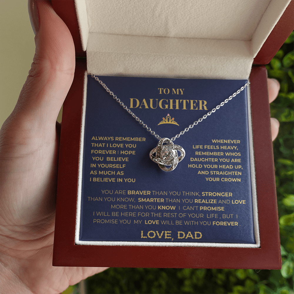 To My Daughter Necklace From Dad – Inspirational Gift for Daughter, Love Knot Necklace, Father to Daughter Jewelry, Birthday Graduation Gift