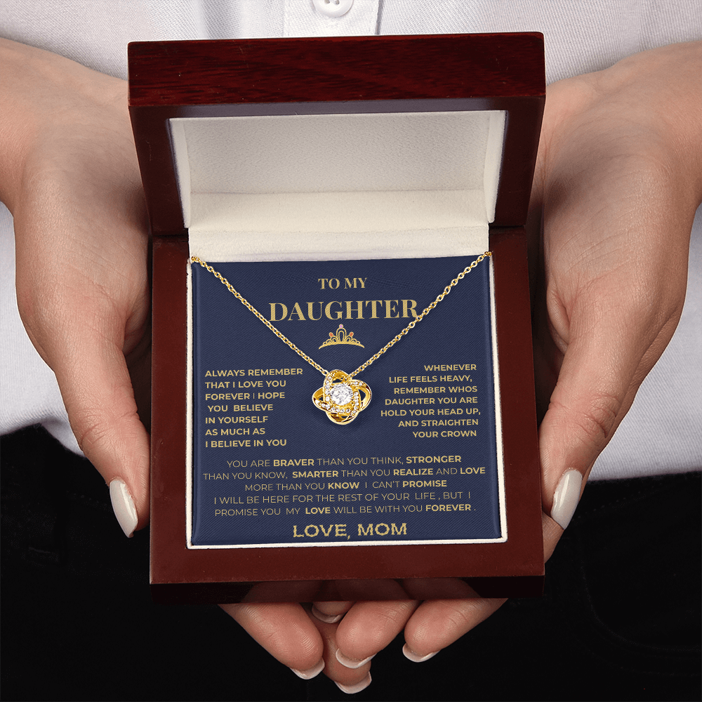 To My Daughter Necklace From Mom – Inspirational Gift for Daughter, Love Knot Necklace, Mother to Daughter Jewelry Gift