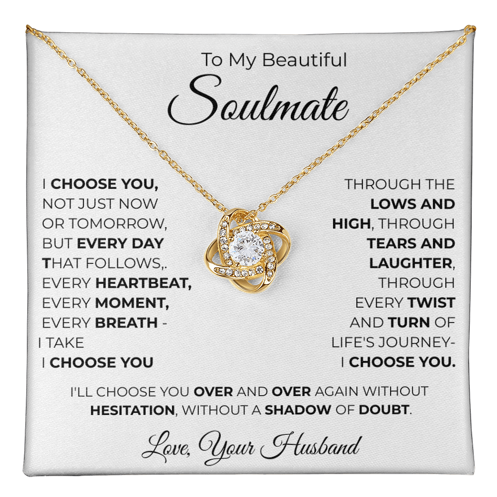 To My Soulmate Love Knot Necklace – Romantic Gift for, Anniversary Wedding, Valentines Gift, Forever Love Jewelry